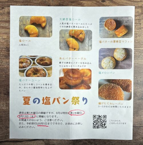 8月のパン販売は ”塩パン パン祭り”
